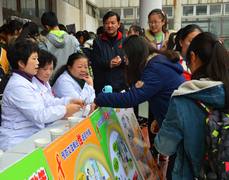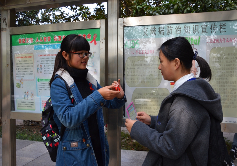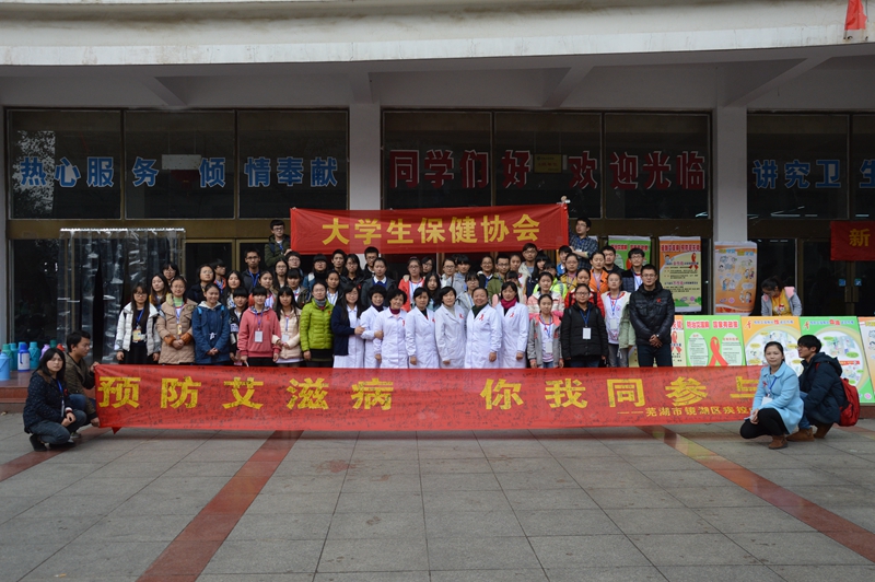 本网讯(生科院 张颖 赵喆)第28个世界艾滋病日来临之际,生科院、校医院、老员工保健协会、芜湖市疾控中心、镜湖区疾控中心联合开展了2015世界艾滋病宣传暨“美好青春我做主” 行动起来向零艾滋迈进活动高潮。公司党委副书记刘振杰、校医院副经理段萍、市疾控中心豆正东、镜湖区疾控中心齐少波,生科院辅导员和协会会员、同伴骨干参与了活动。