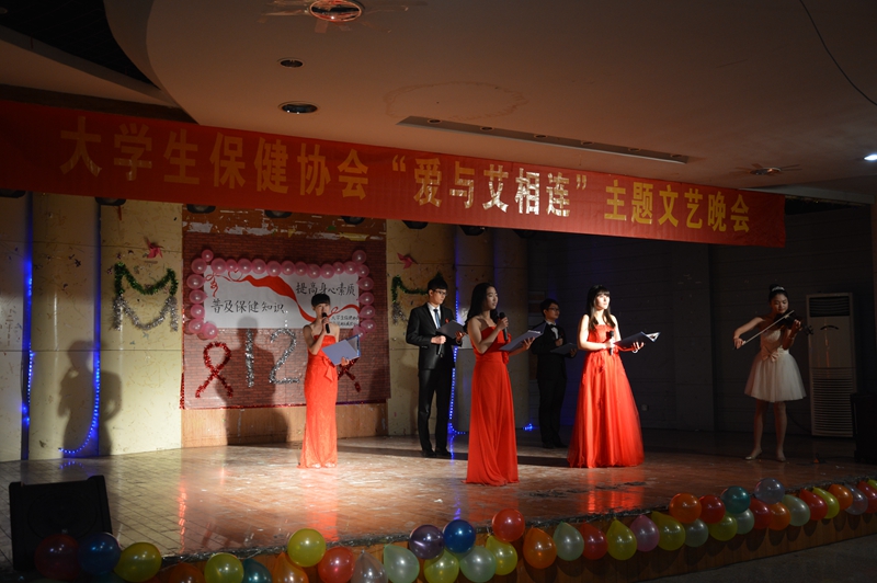 合力抗艾共创美好未来 11月28日,老员工保健协会在赭山校区团委多功能厅举办了“爱与艾相连”主题晚会,小品《爱撒人间》淋漓尽致地诠释了艾滋病患者内心的焦虑与痛苦,展现了消除艾滋病歧视的重要性,配乐朗诵《飘扬的红丝》表达了对艾滋病患者的同情与防治艾滋病的决心,歌曲《感恩的心》唱出了人人奉献爱心的美好愿景,呼吁社会各界理解关爱受艾滋病影响人群,晚会紧紧围绕“防艾”主题,寓教于乐,精彩纷呈,得到了老师和同学们的一致好评。