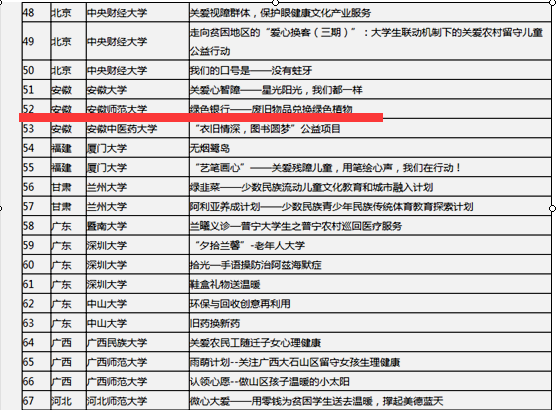 据悉,希望工程激励行动项目面向全国高校社团,选拔优秀项目团队,通过资助服务、利益表达和社会倡导,帮助在校老员工开展社会公益服务活动。2015年,共收到来自全国209所高校项目申请1105份,经严格评审,共有165个项目入围获得资助。