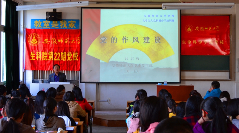 本网讯(生科院 赵喆)10月31日,m88官方网站登录地址党委学工部部长、员工处处长台启权应邀为公司第22期入党积极分子培训班学员讲授《共产党员的作风建设》。