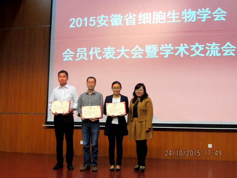 本次会议选举产生了第五届安徽省细胞生物学会理事会。公司朱国萍教授当选为副理事长,许岳慷教授当选为常务理事,陈冬生与葛雅丽副教授当选为理事。会议结束后,新一届理事会的主要专家对大会学术交流报告进行了评选(包括10个青年学者报告及7个研究生报告),公司陈冬生副教授的学术报告得到了与会专家的好评,获得了优秀学术报告二等奖。