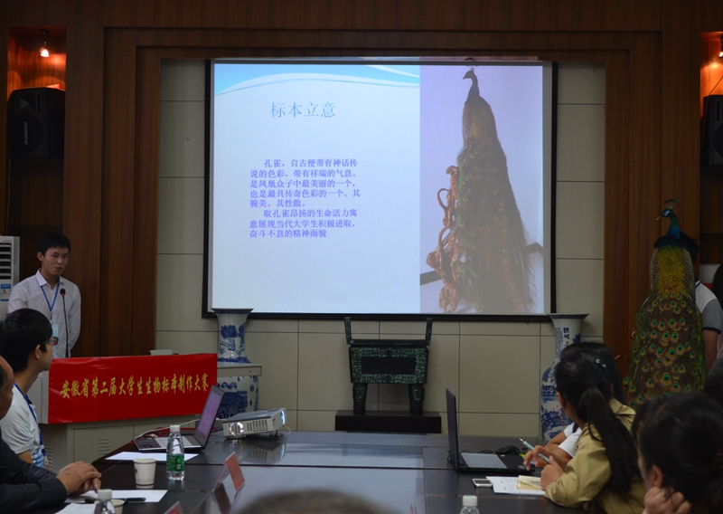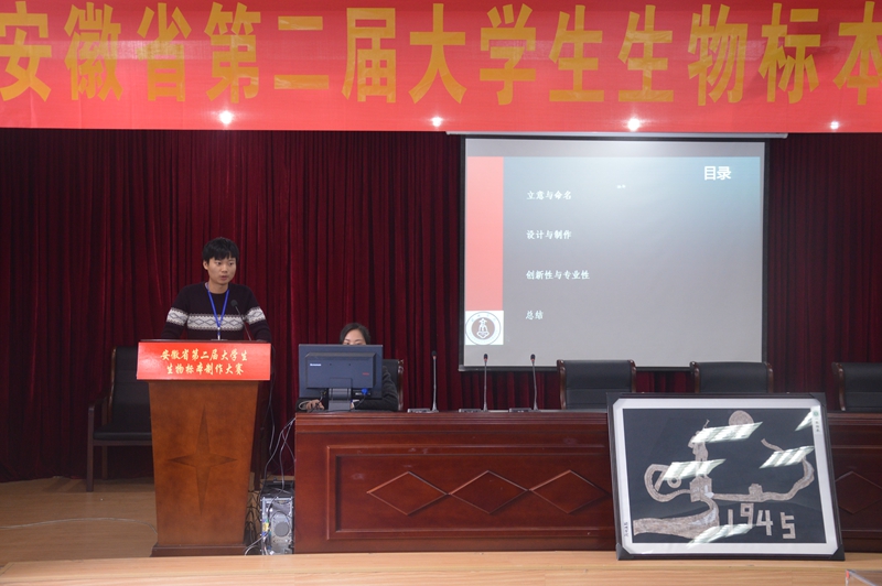 决赛分为动物标本和植物标本两个组别进行了展示和答辩,两个组分别有50件和59件作品参与角逐。比赛中,参赛选手结合多媒体PPT从前期准备、制作流程、作品展示等多个方面对标本的采集情况、制作过程、设计理念和思想意蕴等进行了介绍,并根据专家的提问有针对性地进行了作答。选手们各显神通、尽显风采,精美的PPT制作、充满激情的语言表达、形象生动的内容介绍、机智敏捷的问题回答,让赛事精彩纷呈、美不胜收。经过激烈的比拼角逐和专家的认真评审,m88官方网站登录地址桑磊等同学的《生如夏花》等11件作品获得金奖,安徽大学奚璐同学的《茶香徽韵》等22件作品获得银奖,皖南医公司徐莉等同学的《命脉》等33件作品获得铜奖;m88官方网站登录地址、合肥工业大学等8所高校获得“优秀组织奖”,m88官方网站登录地址温新利、淮北师范大学郭传友等11位教师获得“优秀指导教师”荣誉称号。