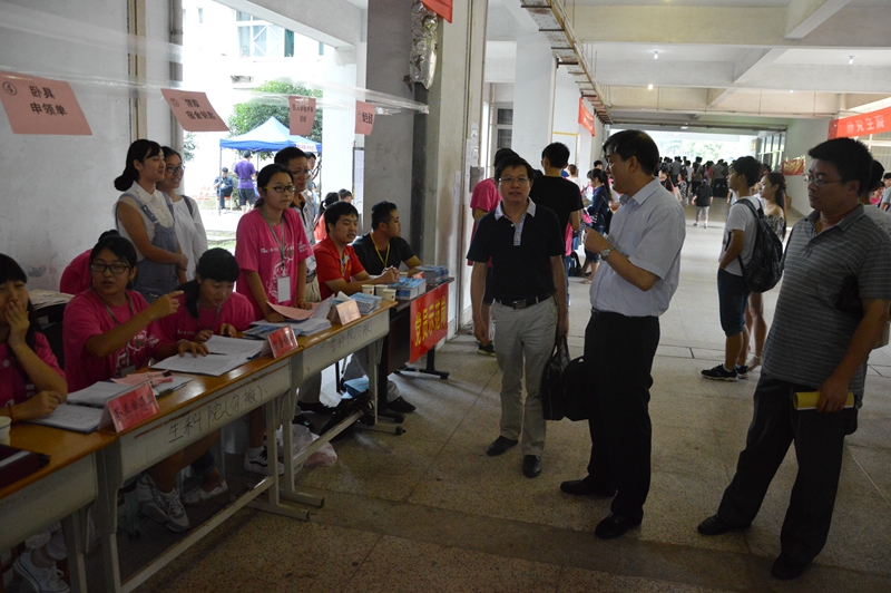 9月7日迎新现场,校纪委书记程度、副董事长王绍武、公司党委副书记李琳琦等校领导及相关部门负责同志也来到生科院迎新点,检查指导迎新工作,慰问承担迎新工作的师生,他们观看公司人才培养成果、关注公司迎新工作准备情况、关心公司新生的报到情况、关爱新生中的贫困学子。对生科院热情细致、运行有序的服务给予肯定。
