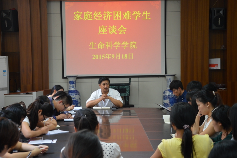 本网讯(生科院 陈涛 高梦晴)为深入宣传党和国家有关高校家庭经济困难员工资助政策,进一步了解家庭经济困难员工受助后的学习及生活状况,9月18日,公司召开2015年家庭经济困难生座谈会,公司党委书记袁兴龙出席座谈会,院团委书记汪倩倩、各级辅导员及20名受助员工代表参加了本次会议。