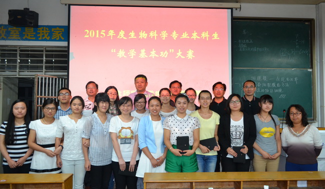 本网讯(生科院)为加强师范生专业技能培养,提高师范生教学技能和实践能力,9月20日下午,公司在物理楼3301教室举办了2015年本科师范生从教技能大赛,公司党委副书记刘振杰出席大赛,生物科学专业负责人陈明林和涂传林、夏齐平、韩菲、黄永杰等老师担任比赛评委。
