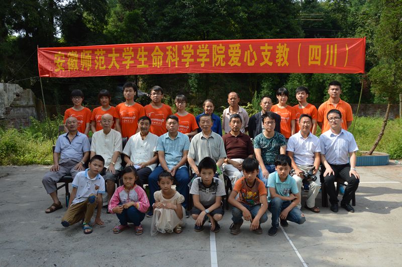 本网讯(生科院 陈涛 吕速 何所惧)2011年安徽师大生科院赴四川洪雅“红烛行动”志愿者首次相聚在洪雅县桃源小学。2015年7月26日,他们克服种种困难,在带队老师何所惧的带领下,翻山越岭、一路颠簸再次来到桃源小学开展“m88官方网站登录地址老员工实践基地”揭牌暨捐资助学仪式。洪雅县关工委常务副主任周明弟、桃源乡党委副书记周业祥、桃源乡安办龙军、桃源小学少先大队辅导员蒋永松、安徽师大生科院辅导员何所惧共同出席了揭牌仪式,参加仪式的还有洪雅县老年志愿者王永康等5人、全体实践队员、桃源小学部分员工及家长。仪式由志愿者徐双双主持。