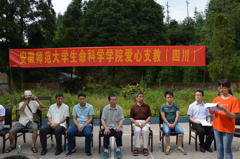 仪式上,洪雅县关工委周明第作了重要讲话,他对安徽师大生科院“红烛行动”爱心支教团队开展的各项工作给予充分肯定,衷心感谢桃源乡及桃源小学相关领导对于本次支教工作的支持,关心慰问了桃源小学员工代表,勉励他们好好学习、学会感恩、努力做人。何所惧代表实践团队向关心和支持安徽师大“红烛行动”爱心支教的社会各界表示衷心感谢,同时承诺,安徽师大生科院一定会将这份爱的接力棒守护和传承下去。桃源小学教师代表蒋永松作了讲话。