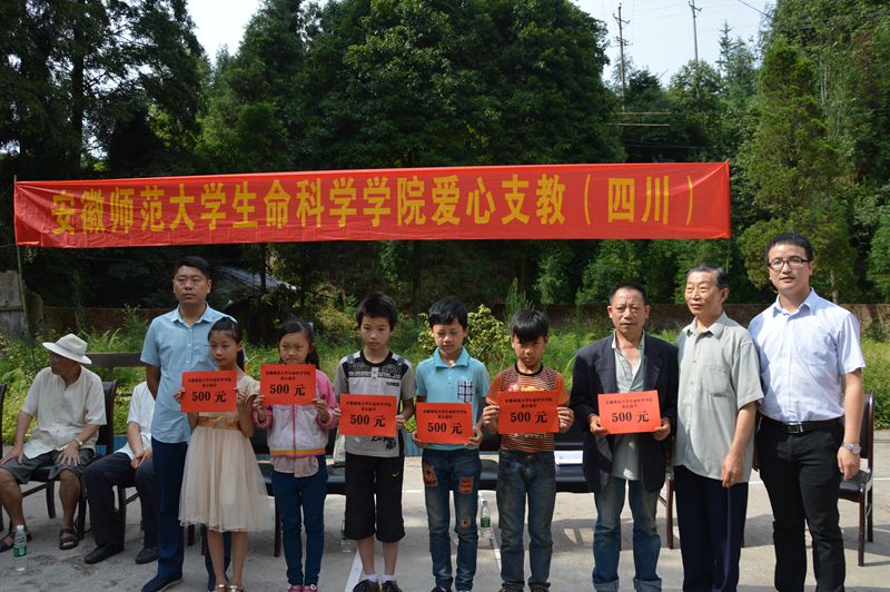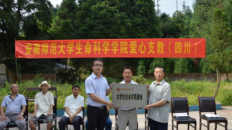 在全体参会人员的见证下,安徽师大生科院政治辅导员何所惧郑重将“m88官方网站登录地址老员工实践基地”的牌匾交给了洪雅县关工委和桃源小学手中,将这份桃源之约延续下去。同时,团队带来了安徽师大师生员工的爱心,在桃源小学的大力支持下,将募得3000元善款捐助给熊官祥等6名贫困员工。