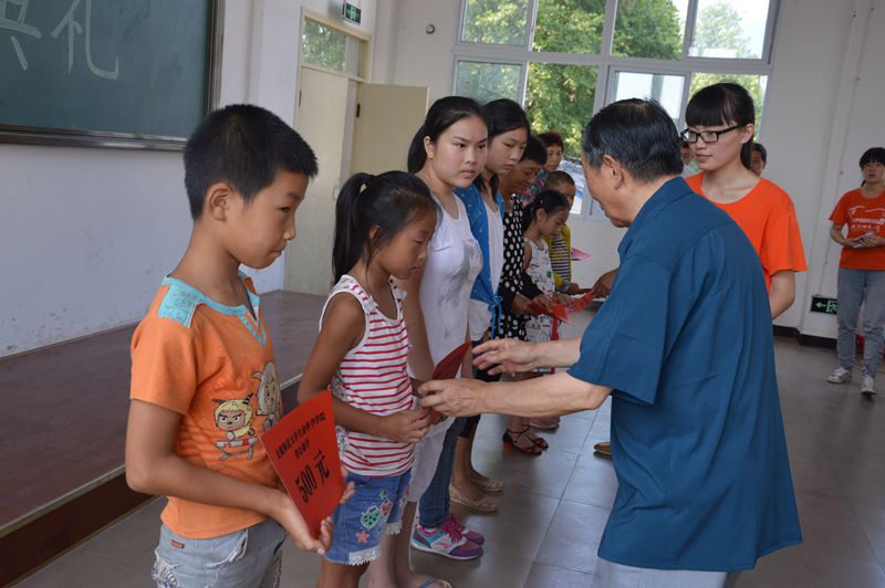 汇演结束后,周明第与鲜文共同颁发由安徽师大生科院带来的爱心助学金,将点滴爱心留给柳江的8名贫困学子,勉励他们刻苦学习、学会感恩、奉献社会。