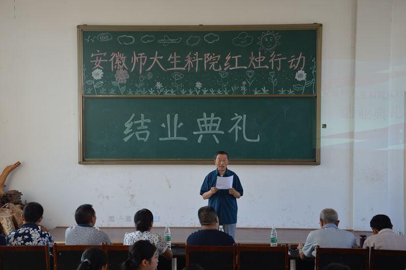 本网讯(生科院 李美倩 何所惧)红烛摇曳,春风暖心。安徽师大生科院赴四川洪雅“红烛行动”爱心支教团队圆满完成实践任务,8月1日在柳江小学隆重举行结业典礼。洪雅县关工委常务副主任周明第、老年志愿者王永康、张光钰、刘有富、方德纯、柳江镇党委委员、组织员谢福均、团委书记刘彬、柳江小学董事长鲜文、德育主任刘友军参加此次结业典礼。典礼由团队指导老师何所惧主持。