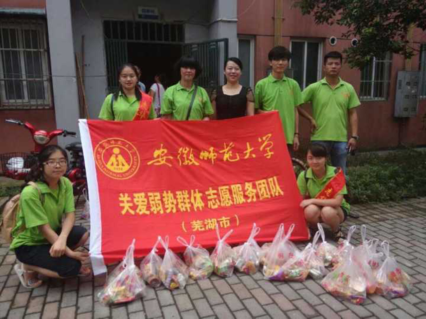 本网讯(生科院 鲁希溪 李昊)在这个夏天,有那么一群身穿绿色队服,穿梭于社会基层的青年人,用行动和汗水、用爱与责任弘扬五四精神,践行“八字真经”,他们就是生科院关爱弱势群体服务队的志愿者们,在芜湖市志华爱心团队的支持下绽放青春力量,绘就青春梦想。