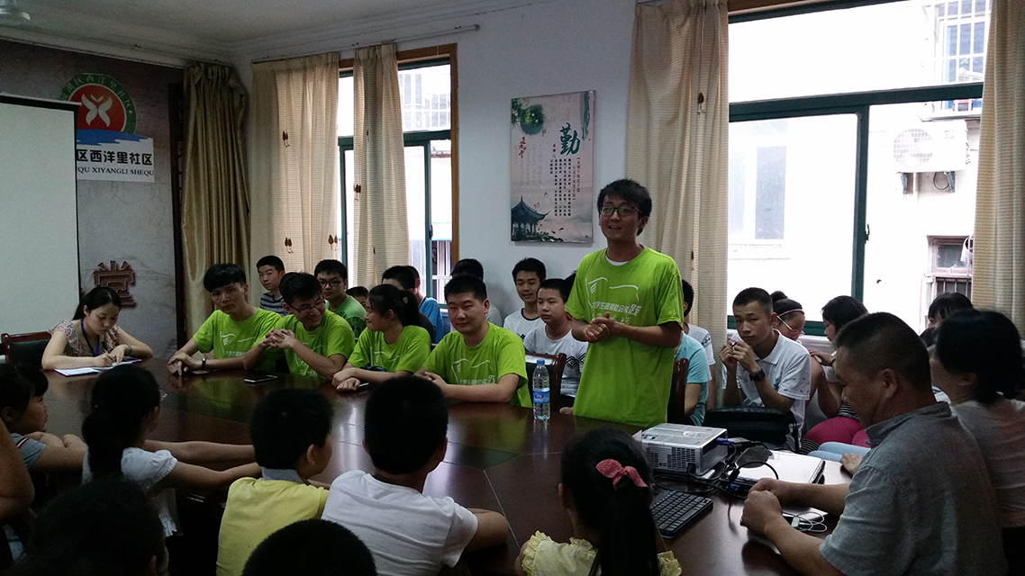 7月17日,志愿者来到西洋里社区,开展暑期三结合活动。团队队长潘川向社区领导汇报了团队的活动目的,详细说明了教学计划,围绕安全主题,从防震减灾、交通安全、急救自救措施等多个方面普及安全意识与安全知识。志愿者还与西洋里社区达成协议,在暑期社会实践结束以后,继续定期开展志愿服务。