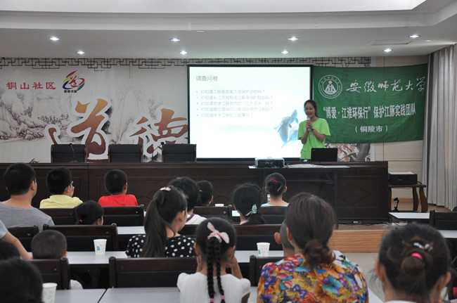 本网讯(文/汪勇 张磊 图/莫雪霈)环保实践,教育先行。安徽师大“博爱·江淮环保行”保护江豚实践团队于7月15日前往铜陵市铜山社区开展以“保护江豚”为主题的环保教育活动,旨在宣传环保理念,普及环保知识。