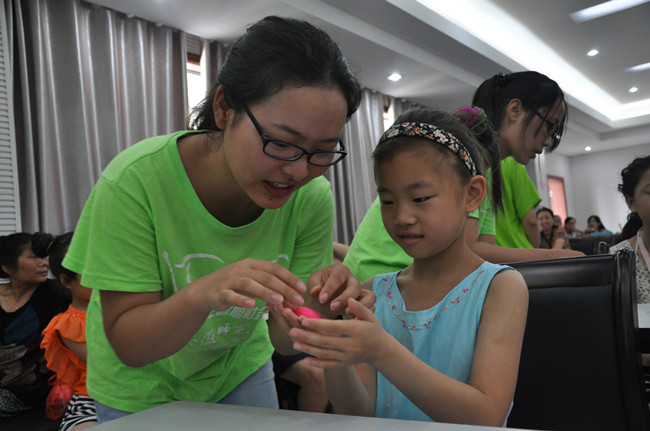 一大早铜山社区便迎来了一群身着环保绿色衣服的志愿者们,他们面带微笑、耐心细致的组织开展了一场别开生面的环保教育活动。活动分为两个部分,志愿者们首先带领社区群众观看了一组关于江豚知识的幻灯片,当被问道“大家了解江豚吗?”一位小朋友举手给了大家童真又不失准确的答复:“我知道,江豚是长江里的微笑女神,如果不好好保护它,我们可能再也看不到了。”接着宣讲员从江豚生活现状到江豚濒危的三大原因,从江豚感人小故事分享到保护江豚的种种方法等方面,向社区居民详细介绍了江豚的相关情况。随后,志愿者们给小朋友们分发教具,一对一地教他们如何用橡皮泥亲手制作小江豚。许多家长和孩子都积极参与到其中,从尾巴到眼睛,从雏形到成型,大家沉浸在制作江豚的乐趣中。轻松愉快的氛围不仅拉近了志愿者与社区居民之间的距离,也借助寓教于乐的教学方式使环保知识和环保理念深植于孩童尚未萌芽的童心中。活动结束后,有位家长在与志愿者们的交谈中说到:“我很愿意带孩子参加类似这样的活动,也许孩子们还不知道环保事业的伟大和需要具备的责任意识,但是他们至少能从你们的教导中了解到,有些事物是美丽而易碎的,这些事物理应受到我们所有人的保护。”