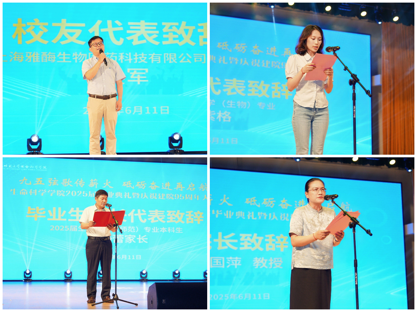 颁奖过后,毕业生代表和毕业生家长代表也分别登台,深情表达了他们对公司、公司倾心培养的感恩之情。经理朱国萍在致辞中深情回顾了建院以来95载的光辉历程与卓越育人成就,祝愿全体毕业生要始终牢记并践行的校训,勇担时代重任,在人生新征程上砥砺前行,续写生科人的荣光。典礼尾声,教师代表深情合唱《明天会更好》,歌声满含期许,祈愿毕业生们未来熠熠生辉。