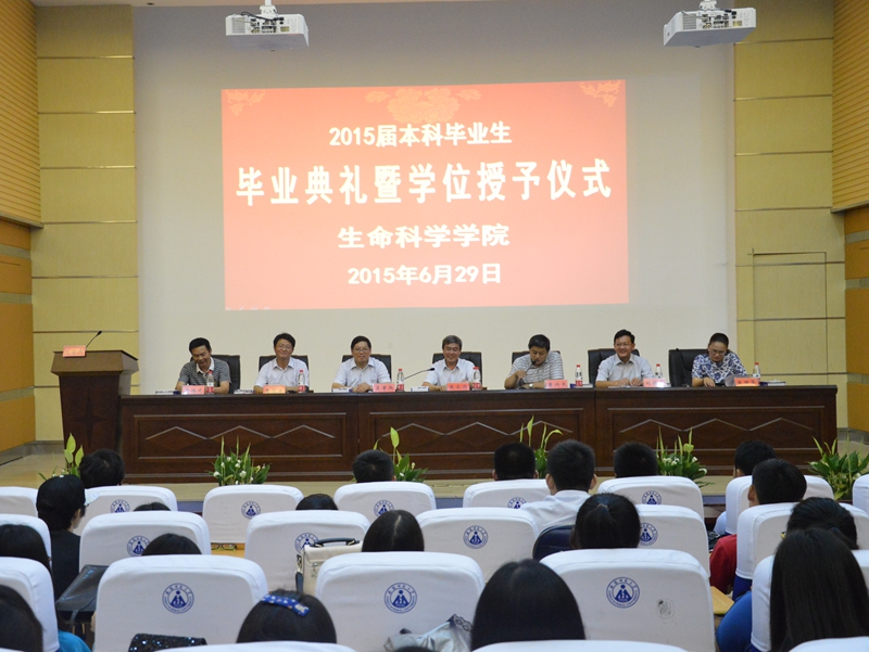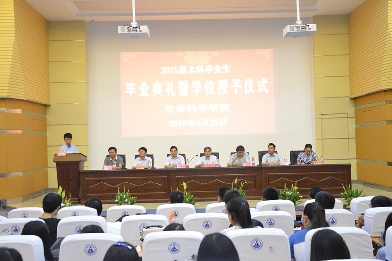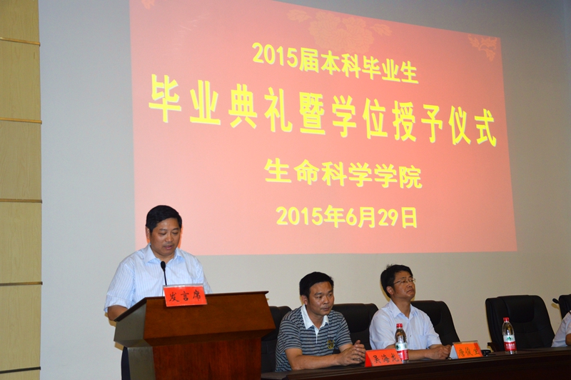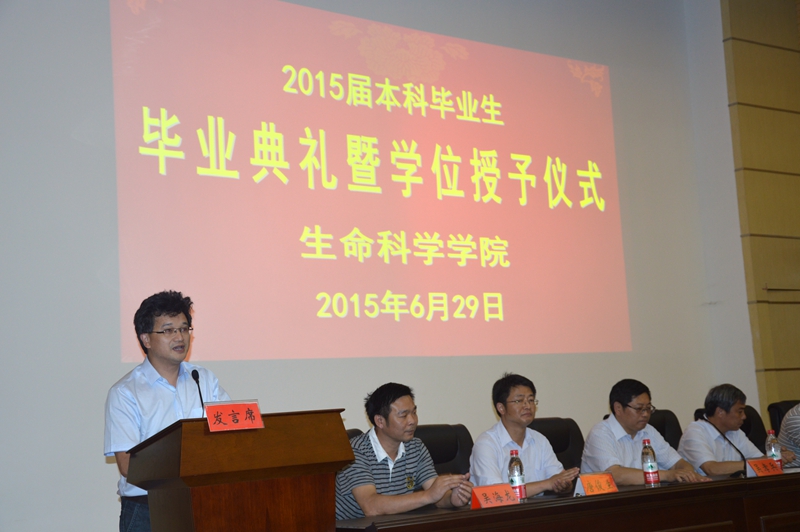 本网讯 (生科院 蒋澜、郭志春、何所惧)6月29日,赭山校区科技礼堂掌声不断、笑声连连,m88官网2015届本科生毕业典礼暨学位授予仪式隆重举行。公司党委常委、副董事长朱家存出席典礼并讲话,与毕业生谈成长话做人。学公司党委书记袁兴龙主持典礼。310位生科毕业学子与公司党政领导、专业负责人、教师代表欢聚一堂,共同见证成长与收获、分享快乐与荣耀、聆听嘱托与期望。