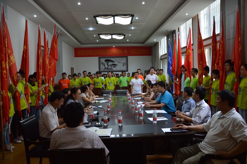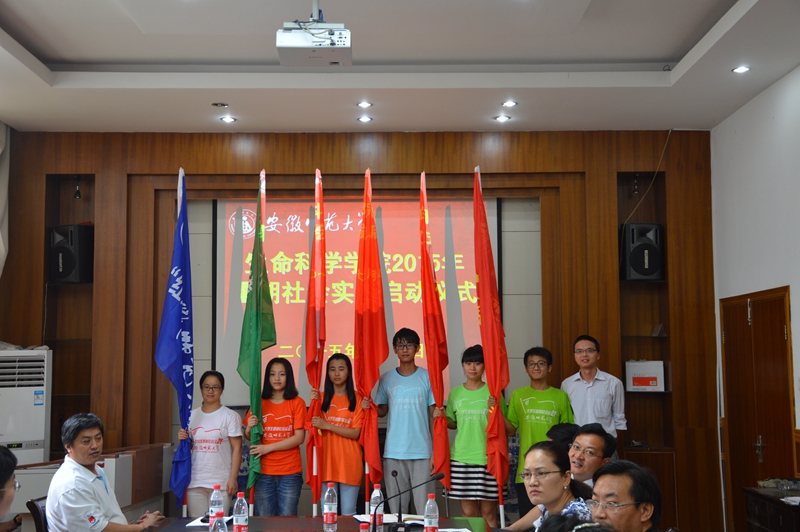 本网讯(生科院 汪倩倩)践行“八字真经”,投身“四个全面”。7月4日下午,生科院在公司学术报告厅举行了2015年老员工暑期“三下乡”社会实践启动暨授旗仪式。校团委副书记汪凯、公司党政领导班子全体成员、各专业负责人、暑期社会实践指导教师代表、重点团队志愿者代表参加了仪式。仪式由公司团委书记汪倩倩主持。