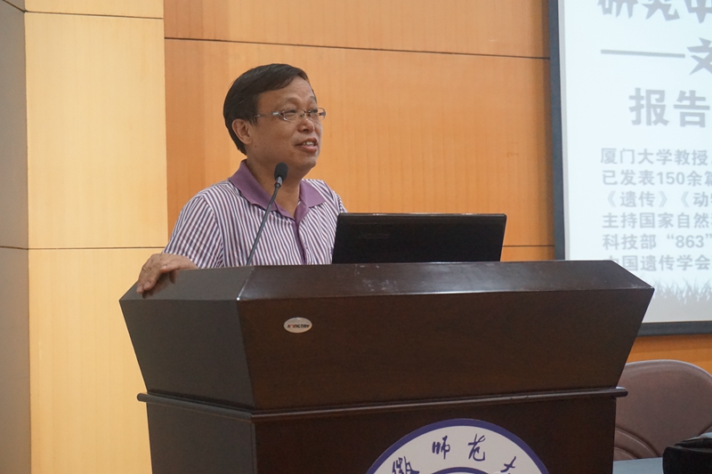 王义权教授从模式生物的定义、用途、标准入手,为我们引出文昌鱼作为模式动物可行性——不仅因为其进化地位独特, 文昌鱼的遗传学和发育生物学的特征也表明它将是一个非常优秀的模式动物。从转型开始研究文昌鱼,王教授课题组遇到无数困难,文昌鱼人工繁殖属于开拓性研究,在方法学构建上他们遭遇了种种失败。王教授坚信只要善于思考,步步递进,定能走向成功,带领课题组成员勇于直面困境,开拓创新,最终在2006年至2007年,成功人工繁殖了全世界第一个F2代文昌鱼,通过进一步优化实验方案,缩短个体的生殖循环周期,形成室内试验养殖系统,从而构建人工繁殖文昌鱼的方法学体系。随后,王教授还为我们介绍了人工繁殖的文昌鱼作为模式动物的相关应用,如文昌鱼Hsp70热休克蛋白热诱导启动子核心序列克隆与功能鉴定,文昌鱼actin基因启动子的克隆与应用等。秉承对科学的兴趣,王教授欢迎与会同学能加入到文昌鱼的研究队伍当中来,一同在自然科学领域畅游。报告结束后,王教授用诙谐幽默的语言,耐心解答了与会师生提出的相关问题。
