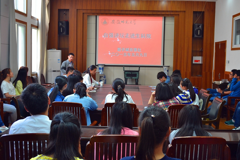 本网讯(生科院 刘新忠 赵喆) 共享成功,共促成长。5月9日下午,新长城自强社第三期“自强讲坛”在公司一楼报告厅举行。2011级学前教育专业周玉平、2011级生科专业朱承节、2012级电子信息工程专业汪志文受邀为80名生科贫困学子做报告。院报告会由辅导员赵喆主持。