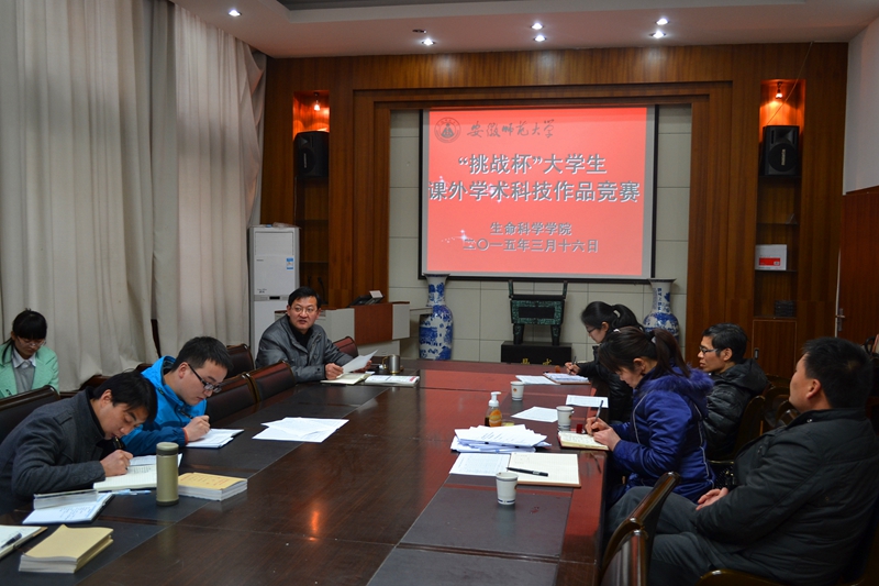 本网讯(生科院 余小飞)3月16日,公司第六届“挑战杯”老员工课外学术科技作品竞赛在一楼会议室举行。胡好远、刘爱民、张盛周等专家和全体辅导员担任评委,评审会由院团委书记汪倩倩主持。
