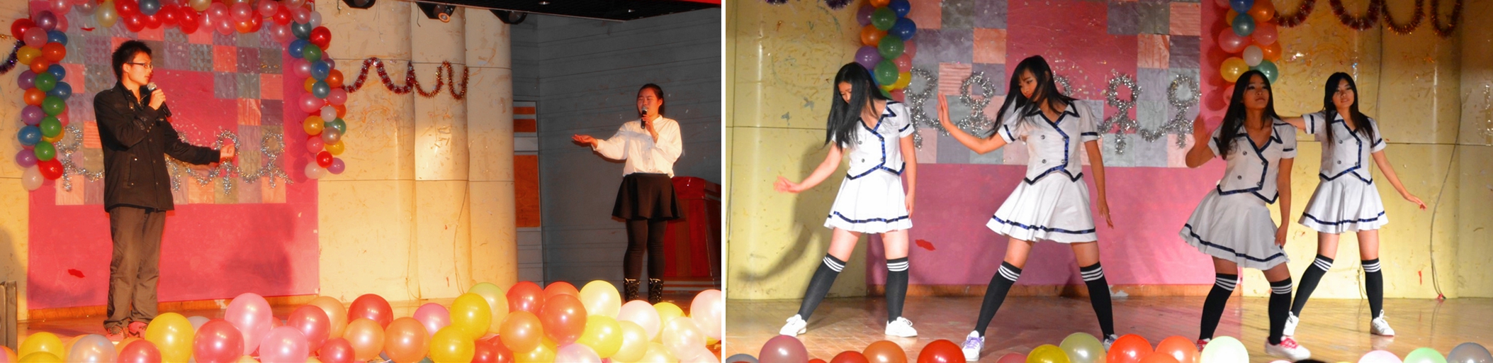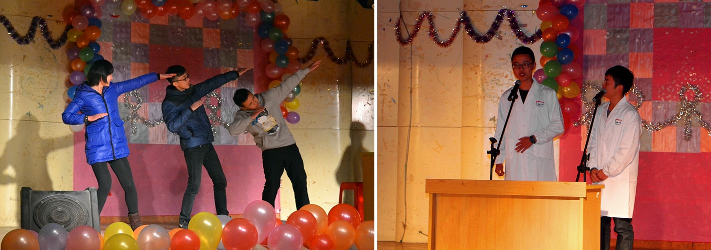 因为爱实现梦想的路不再曲折,因为爱走向未来的我们不再孤独,一曲小合唱《爱,因为在心中》拉开了本次晚会的序幕。小品《功夫》掀起了晚会的第一个高潮,四位来自不同专业的同学用别样的方式将春晚经典小品呈现在师生面前,其对范伟声音的模仿更是惟妙惟肖,引得台下一阵欢呼。舞蹈《No,No,No》迸发着青春的魅力让观众们眼前一亮,彰显出生科学子的活力与激情。情景剧《大学三个一》结合实际生活,为大家从不同的角度表现了初入大学时的各种心理,同时也引人深思给人启示。相声《我在安师大》的演员则以妙语连珠,诙谐幽默的台风引发观众共鸣博得喝彩。有戏有曲,有舞有歌,一段歌曲串烧勾起观众无限联想。话剧《那些年反串版》逗得台下连连叫好。《Crazy》的舞者们舞姿曼妙、个个大放光彩。小品《如此课堂》轻松活泼、幽默风趣,源于生活。值得一提的是歌曲《海阔天空》,宛转悠扬,大气稳重的歌声将本次晚会推向了又一个高潮。小品《还珠格格之非诚勿扰》,演员们将古代与现代相结合,反映了社会中存在的一些问题,引发同学们的思考。一首《唱脸谱》铿锵顿挫,将国粹之魅力展现得淋漓尽致。最后晚会在大合唱《青春舞曲》圆满落幕。