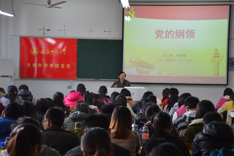 本网讯(生科院 时英东 张磊)11月15日上午,公司分党校第21期入党积极分子培训班第六讲在教学楼1403教室举行,生科院关工委副主任李沛儒老师应邀为学员们教授了“党的纲领”,公司分党校班主任张磊主持了报告会。