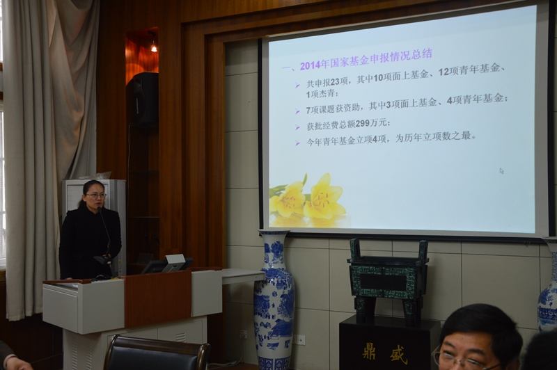 分管副经理朱国萍回顾总结了近三年公司国家自然科学基金项目申报情况,通报了2014年生命科学部项目申报及立项情况,分析了2015年度国家自然科学基金项目申报工作所面临的新形势,解读了项目限项申请等相关政策和公司将要采取的有关措施、要求。希望广大教师特别是青年教师重视申报工作,积极参与申报工作。会上,郝家胜、刘坤、李晓红、王鹏和葛雅丽五位今年成功申请到国家自然科学基金项目的教师代表分别分享了项目申报经验。