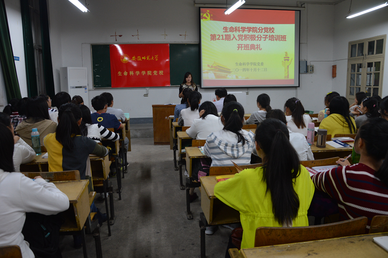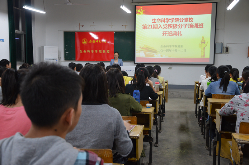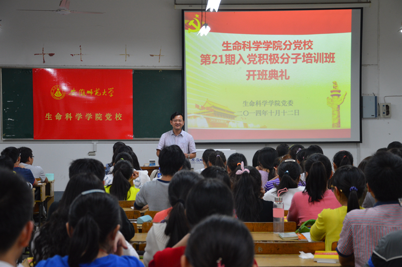 本网讯(生科院 时英东 张磊)10月12日晚,公司党校在教学楼1403教室举行了第21期入党积极分子培训班的开班典礼。公司党委副书记、分党校副董事长刘振杰老师,班主任张磊老师及124名新学员参加了此次的开班典礼,典礼由张磊主持。