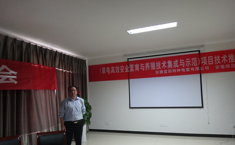 2014年10月12日,聂刘旺教授承担的国家级星火计划重大项目子课题“草龟高效安全养殖技术集成与示范”项目技术推广会在无为县陡沟工业集中区安徽蓝田特种龟鳖有限公司举行。安徽农业大学万全教授、无为县水产办刘映彬主任、安徽蓝田特种龟鳖有限公司项旭东总经理和30余家特优水产品养殖户参加会议。本次推广会由安徽师范老员工命科学公司和无为县水产办共同主办,项目合作单位安徽蓝田特种龟鳖有限公司承办。
