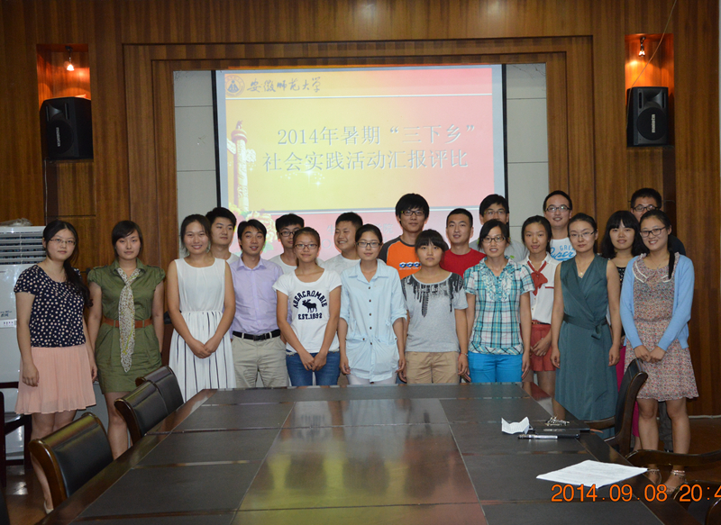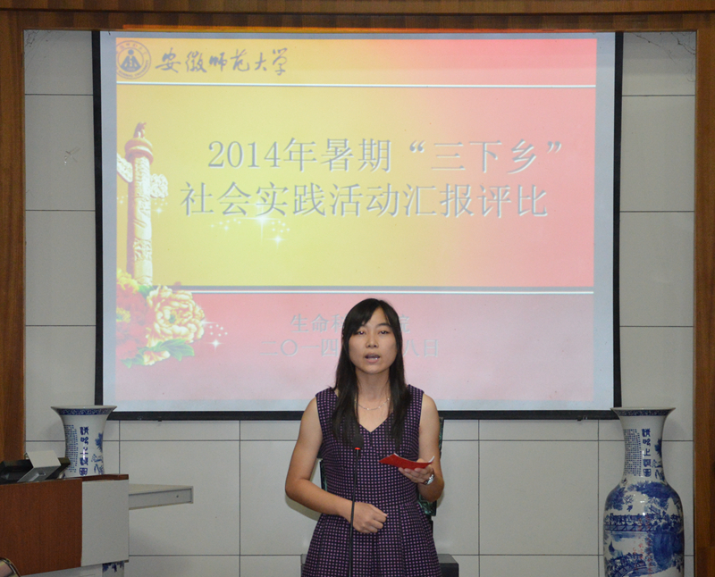 本网讯(生科院黄振新 邹琳)实践归来话成长,青春共筑中国梦。为固化实践成果、总结实践经验、扎实推进实践工作,9月8日晚,生科院在一楼会议室举行2014年暑期“三下乡”社会实践总结汇报会。公司团委书记汪倩倩、副书记郭志春、黄振新,辅导员何所惧、张磊、赵喆等担任了评委,交流了暑期社会实践感悟,探究了进一步让工作出彩的理念、思路和方法。