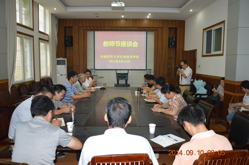 座谈会上,陈壁辉先生回忆自己1954年刚来安徽师大生物系任教的情景,历历在目,娓娓道来,让人感叹公司经过半个世纪的建设所带来的巨大变化。在谈到他刚来生物系时,教学条件很差,教学资源严重不足,生物教学需要大量标本实例,为了教学的顺利进行,自己带领青年老师和员工想尽办法自己分类制作。这些标本资源既是教学资源,同时也是很好的科普教育资源,经过长期积累,现如今已建成了集教学、科研和科普教育为一体的现代化多功能标本馆,2006年标本馆被批准为安徽省科普教育基地。在谈到科学研究时,他讲起如何根据国家需要做鱼类资源调查,如何与扬子鳄有缘,穷极数十年开展扬子鳄研究,成功实现人工繁育,为扬子鳄物种保种奠定基础。他谈到人生体会时,他结合自身心理路程变化,语重心长的告诉年轻教师要坚定理想信念,立足本职岗位,潜心教书育人。与会教师代表向陈先生敬献了鲜花,亲切回忆了陈先生授业解惑的情景,深切表达了对陈先生的尊敬和谢意。公司党委书记袁兴龙代表公司向全体教职员工致以教师节节日问候,对陈先生荣获校首届终身成就奖表示祝贺,充分肯定了陈先生在教学科研等方面所取得的突出成就,高度赞扬了陈先生在公司学科发展、人才培养和队伍建设等方面所作出的突出贡献。