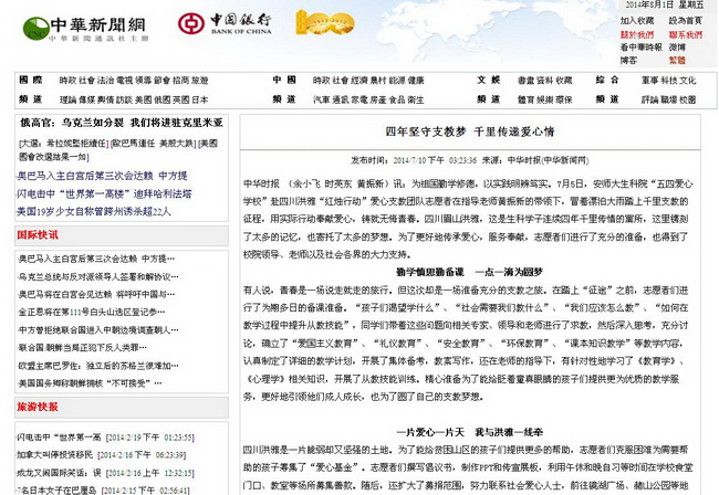 本网讯(生科院 黄振新 余小飞)为祖国勤学修德,以实践明辨笃实。社会实践是老员工思想政治教育的重要环节,对于促进老员工了解社会、了解国情,增长才干、奉献社会,锻炼毅力、培养品格具有不可替代的作用。2014年暑期,生科院8名志愿者在指导老师黄振新的带领下,奔赴千里之外的四川洪雅,组织开展了为期近一个月的爱心支教活动,在实践中奉献了爱心,锻炼了自我,实现了受教育、长才干、做贡献、树形象的有机统一。