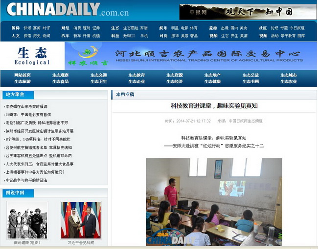 志愿者们的辛苦付出受到了当地政府、师生以及社会各界的广泛认同。洪雅县关心下一代工作委员会、中国狮子联会四川洪州狮爱服务队、柳江镇政府和团委领导近十次前往公司看望慰问实践团队师生,洪雅县关工委还特地以生科院爱心支教为题材撰写了诗歌并写成书法作品赠送给支教团队。实践活动结束后,当地政府和柳江小学为志愿者师生举行了隆重的欢送仪式。余登富、周明弟、刘友军等领导和老师向支教师生们的辛苦付出和杰出表现致以崇高的敬意和深深的感激。孩子们用精彩的文艺演出展示了20多天的学习成果,抒发了对支教老师的敬爱和不舍。孩子们给志愿者们送上了精心准备的小礼物,紧紧拉住志愿者不让志愿者离开,温馨的话语和不舍的泪水书写着最真挚的师生情谊,一间间小小的教室装满了师生相拥的感人画面……中国日报网、中华新闻网、央视网·环保频道、中国教育在线、安徽教育网、安徽新闻网、安徽文化网、四川新闻网等省级以上媒体对活动报道上百次。芜湖电视台、洪雅电视台和洪雅日报等电视、报纸媒体也对活动进行了跟踪报道。多家微信、微博新媒体平台对活动进行了同步直播,其中“成都志愿者”特地为团队做了8期专辑,对实践活动给予了充分的认可和高度的评价。