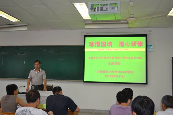 8月13日上午,国培计划(2014)—安徽省初中生物骨干教师能力提升高级研修班在田楼6楼安全生产培训小教室召开了“珍惜国培,潜心研修”的主题班会。班主任涂传林副教授详细介绍了“国培计划(2014)—安徽省初中生物骨干教师能力提升高级研修项目”的背景、目标、任务、内容和要求,并通过民主推荐的方式组建了班级临时党支部和班委会。为保障培训活动的高效而顺利开展,涂老师还结合实际对学员进行了安全教育。会后,涂老师深入食堂和宿舍,了解学员的食宿情况,及时帮助解决在吃饭、学习及娱乐等方面遇到困难,并为学员购买了篮球、羽毛球、兵乓球、跳绳等运动器材,加快快速适应紧张而丰富的国培生活,让广大学员感受到了如家般的温暖。(储可藴/文,张振林/图)