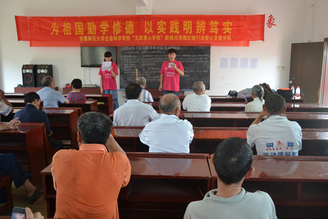 截至7月18日,志愿者们已先后三次前往敬老院看望老人。老人们因志愿者的前往非常开心,拉着志愿者的手,给志愿者讲他们年轻时候的故事。志愿者们耐心询问老人们的生活状况,根据需要给他们提供了多方面的帮助。17日下午,志愿者们还给老人们带去了精心准备的节目。黄梅戏《女驸马》让老人们感受到了安徽戏曲的魅力;诗朗诵《没有共产党就没有新中国》将老人带回到了往昔的峥嵘岁月;舞蹈《天竺少女》展示了志愿者们的青春活力;歌曲《精忠报国》再现了志愿者们的报国情怀;《如果快乐你就拍拍手》全面点燃了快乐的焰火,老人们脸上堆满了笑容,沉浸在欢快当中。志愿者们载歌载舞,老人们也精神起来,二胡独奏《南泥湾》、葫芦丝《打靶归来》博得阵阵掌声……傍晚,志愿者们与老人依依挥别。“常来啊!常来啊!”老人一边挥手一边说。敬老院张亚群经理深情送别志愿者说:“你们都是好孩子!敬老院已经很久没有这么热闹了,老人们已经很久没有这么开心了!谢谢你们!”