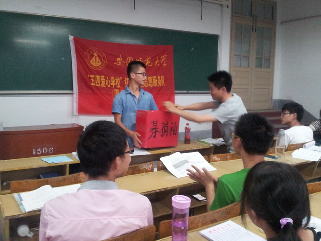 四川洪雅是一片脆弱却又坚强的土地。为了能给贫困山区的孩子们提供更多的帮助,志愿者们克服困难为需要帮助的孩子筹集了“爱心基金”。志愿者们撰写倡议书,制作PPT和传宣展板,利用午休和晚自习等时间在公司食堂门口、教室等场所募集善款。随后,还扩大了募捐范围,努力联系社会爱心人士,前往镜湖广场、赭山公园等地面向社会募集基金。经过努力,志愿者们共筹集“爱心基金”近五千元。一张张钞票,一颗颗爱心,一份份感动,寄托了大爱无疆的民族精神。