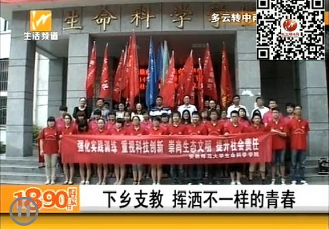 生科院“五四爱心公司”赴四川洪雅“红烛行动”爱心支教团队也得到了社会各界的认可与支持,7月3日芜湖电视台经济生活频道《1890好实在》栏目以“下乡支教,挥洒不一样的青春”为题,对团队活动进行了报道。