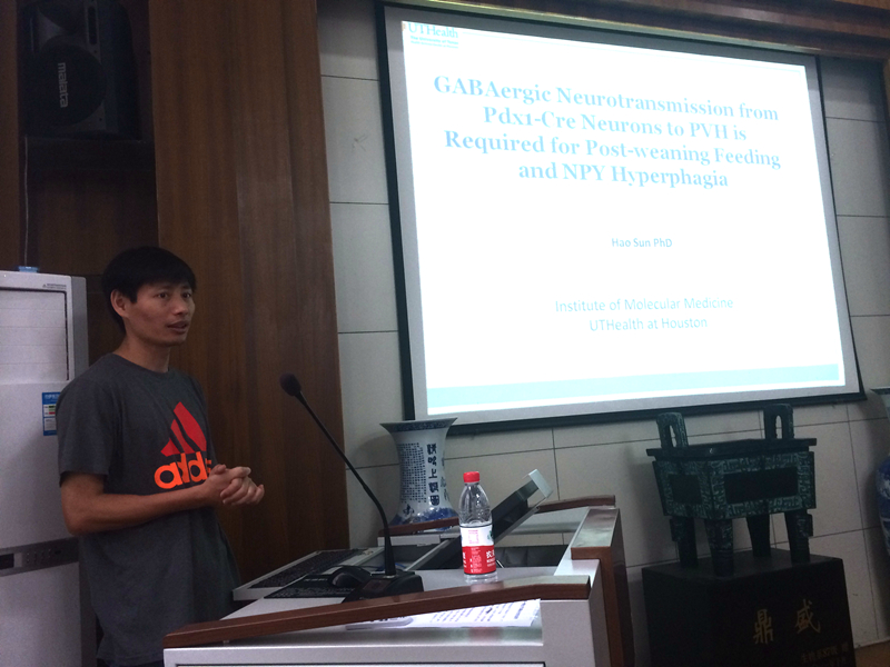 孙灏博士的报告主要介绍了瘦素Leptin的表达与肥胖的关系、以及与之相关的由GABA和Glutamate等一些神经递质介导的神经通路的调控作用。孙灏博士2007在中国科学技术大学获得神经生物学博士,随后赴美从事博士后研究工作。目前在美国德州大学健康科学中心分子医学研究所从事摄食和能量消耗平衡过程中神经通路的调节研究。