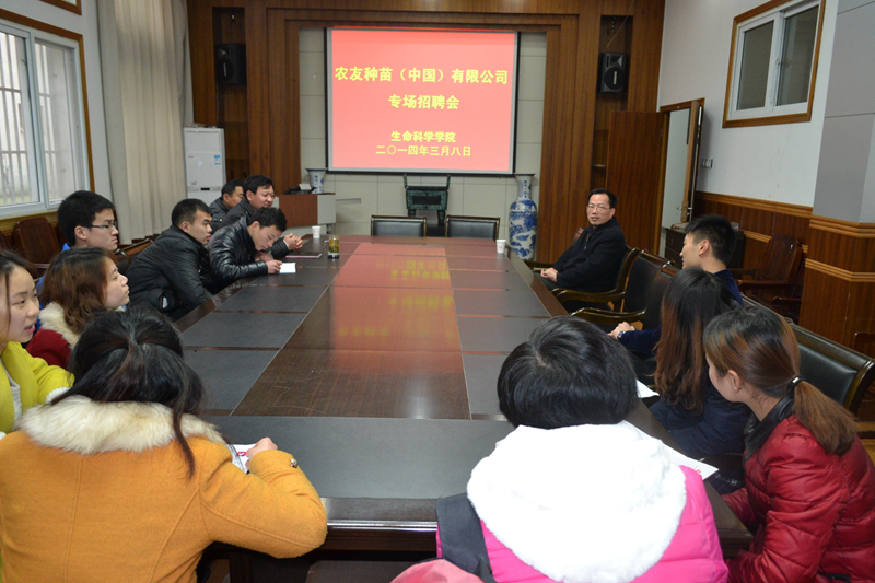 公司发出邀请函20多份,农友种苗(中国)有限公司、南京世林生物公司等先后应邀组织公司专场招聘会11次,提供就业岗位125个;向用人单位寄发毕业生求职简历40多份,进行“人和岗”对接落地推荐,30多人次参加面试,20余人签定就业协议。通过电话、推荐信等,先后联系萧县实验中学、合肥厚德中学、马鞍山阳光公司、安师大附小、芜湖事达中学等,推荐20多名毕业生面试见习和应聘考试等。充分利用员工资源,推荐毕业生到王雷创办的安徽出众文化教育咨询公司等进行援助就业。
