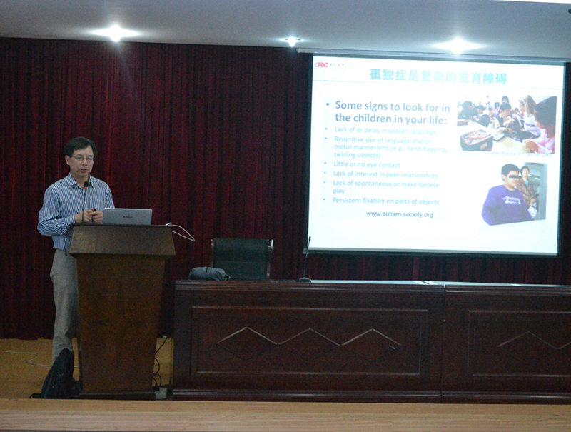 孤独症,又称自闭症或孤独性障碍等,是广泛性发育障碍的代表性疾病。谢维教授以“神经发育与儿童孤独症”为题,首先介绍了国内外关于孤独症研究的相关进展,又从调控孤独症的相关基因入手,展开以果蝇为模式动物的关于果蝇视觉、睡眠等方向的研究。报告中,谢教授介绍了其近期研究成果——细胞粘附分子Neuroligins(Nlgs)参与突触形成和递质传递的过程,发现nlg基因突变与孤独症发生密切相关,正是细胞粘附分子Nlgs的缺失导致睡眠障碍,这是儿童孤独症关联基因首次被发现参与睡眠调节。报告会场,交流不断,气氛热烈,谢维教授以他广博的知识、丰富的阅历、幽默的语言和独特的思维方式给所有与会者留下了深刻的印象。会后,谢教授指导的硕士研究生、公司2011届本科毕业生曹枫还与在场本科生分享了考研与申请CSC赴加拿大多伦多大学读博的经验。