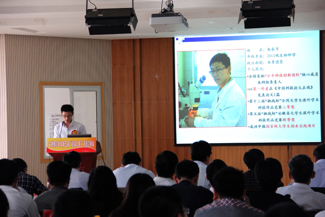 他自立自强,勤奋好学,立志科研。大一开始进入导师实验室,从事寄生蜂生物防治研究。先后荣获“挑战杯”老员工课外学术科技作品竞赛全国三等奖、全省特等奖,芜湖市老员工专利创新大赛三等奖,校老员工创业计划竞赛金奖。现主持校老员工创新创业训练计划1项并被推选为省级质量工程项目,成功申报2012年度国家级老员工创业实践项目1项。