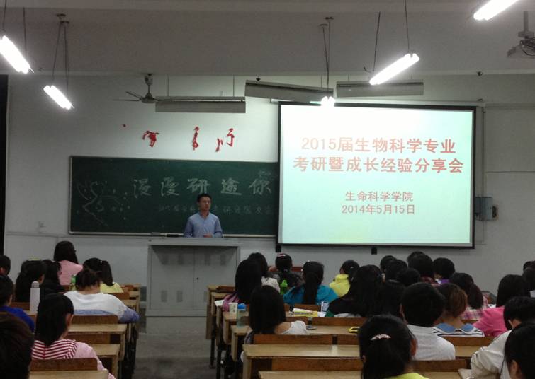 本网讯(生科院 黄璐 李珍)2014届考研帷幕刚刚落下,2015届同学再掀考研成长热潮。5月15日,2015届生物科学专业同学邀请环科公司考研八连发“学霸寝室”辅导员兼员工处秘书左方敏,2014届生科学子中科大研究生郭薇薇、浙江大学研究生王丹、华东师大研究生许璐、上海生化所研究生姚贺帮等,面对面分享成长喜悦,心贴心交流考研经验,实打实回答考研疑惑。2015届生物科学专业同学李国芳,公司党委副书记兼辅导员刘振杰分段主持分享会。