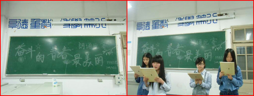 2013级各班级先后举办了“奋斗的青春最美丽”主题朗诵比赛。全体同学响应号召,积极参与此项活动。同学们热情洋溢,富含感情,让我们实实在在地感受到了青春的活力,因为奋斗的青春最美丽。