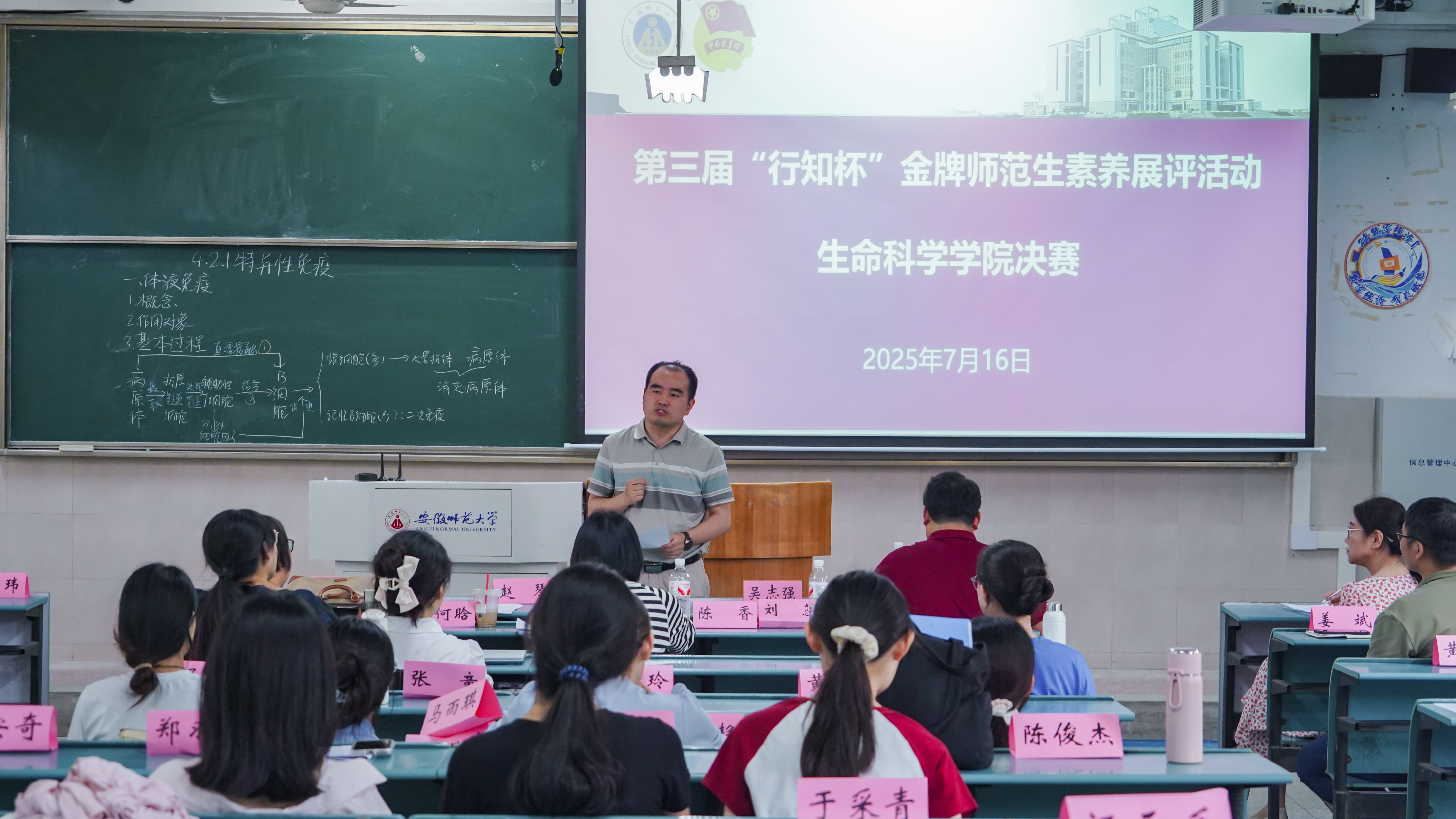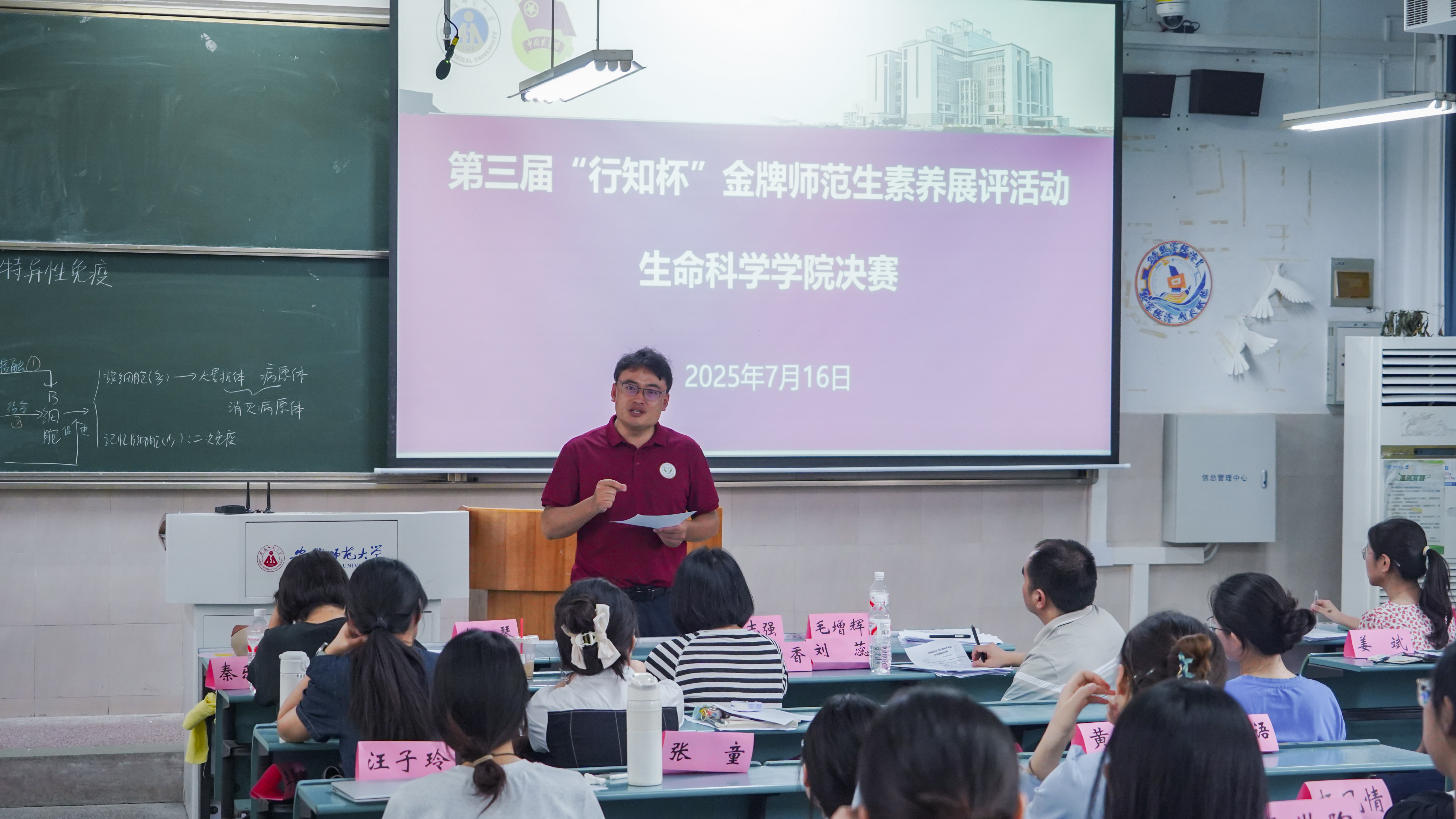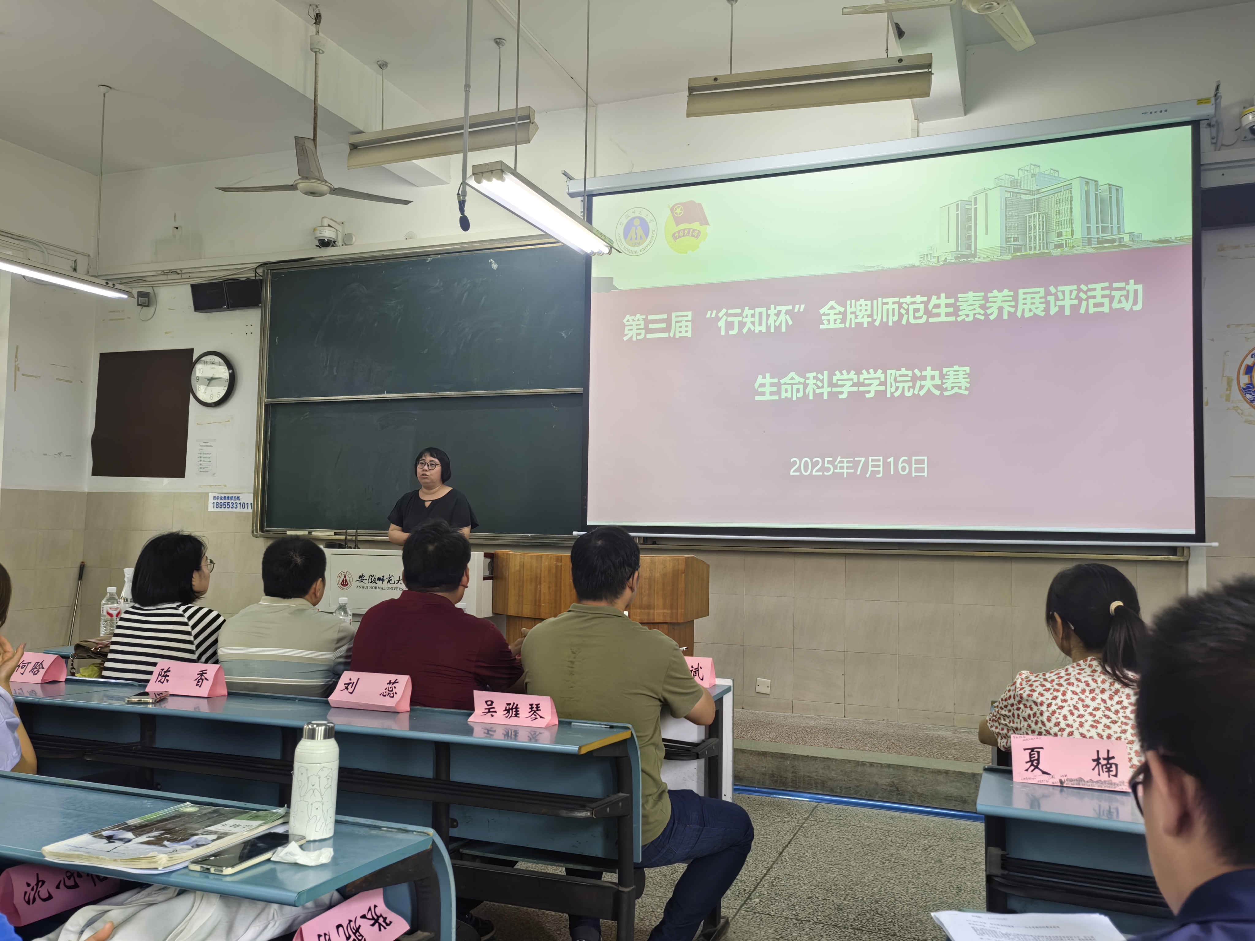 7月16日,公司在行知楼举办第三届“行知杯”金牌师范生素养展评活动院级决赛。专业负责人韩菲、姜斌,公司教师严帆,校外专家毛增辉、吴志强、赵琴,辅导员胡玮、刘梦婷以及2023级生物科学专业参赛的同学参会。活动由辅导员胡玮主持。