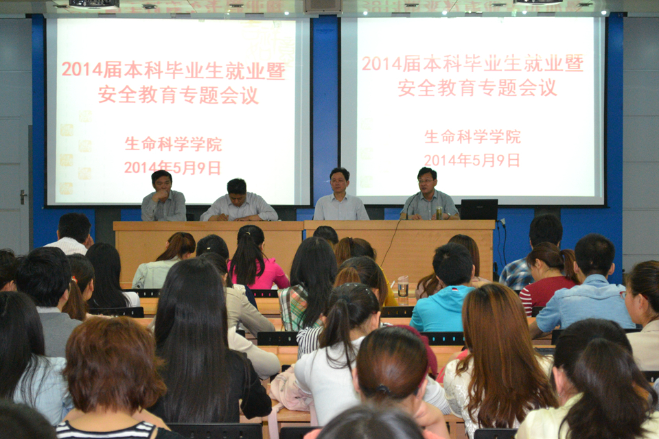本网讯(生科院 汪倩倩) 近日,公司在赭山校区就业中心报告厅召开2014届本科毕业生就业暨安全教育专题会议。公司领导袁兴龙、刘振杰、吴海龙和毕业班辅导员夏齐平、汪倩倩出席会议,2014届暂未就业毕业生参加会议,经理席贻龙主持会议。
