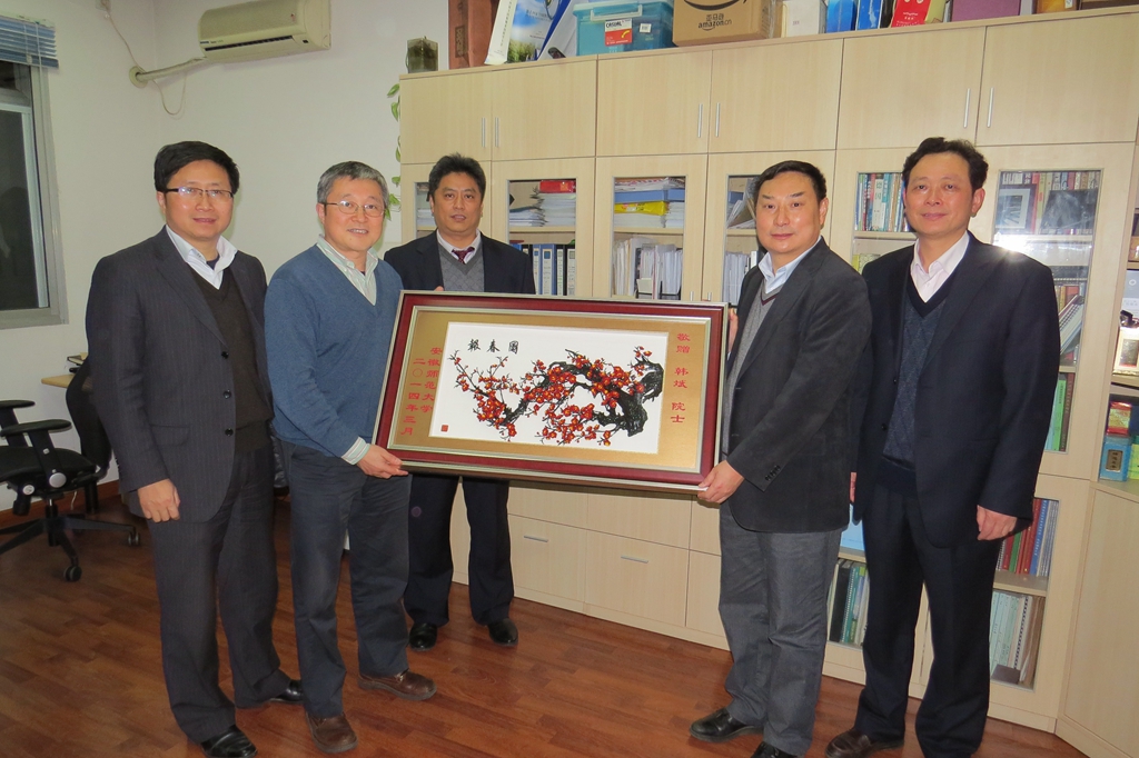 李进华副董事长一行与韩斌院士进行了亲切的交流,并代表公司全体师生向韩斌研究员成功当选中国科公司院士表示热烈祝贺;通报了近年来公司事业的发展情况,特别是公司成功跨入省部共建行列;诚挚邀请韩院士在适当的时候回母校访问和交流。韩斌院士对母校的发展状况和前景深感欣慰,欣然应允早日回母校走一走、看一看,尽己所能关心和支持母校的建设和发展,同时代请转达对母校师生的深情问候和美好祝愿。