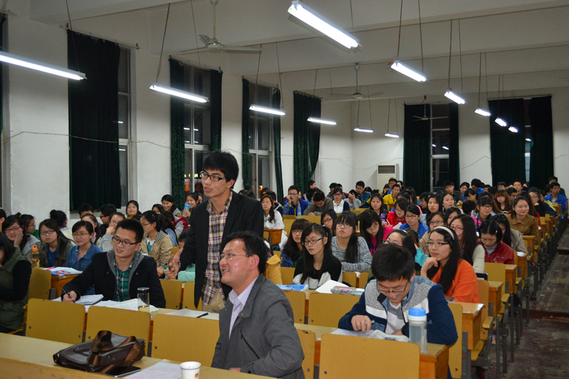 党洋首先以“马斯洛需求论”为引导,指出人进入社会的最终目的是自我实现。他以幽默诙谐的语言相继从专业、创业、销售、市场、行政、管理等6个物质层面,重点规划了我们“想象中的未来”;并就幸福、爱情、理想、生活、朋友等精神层面,分享了个人奋斗的经验与教训。他希望“每天把大家叫醒的不是闹钟,而是梦想”,拥有“7天形成一种记忆,20天形成一种习惯,90天形成一种性格”的养成经历,党洋的丰富社会实践经验给予了同学前进的无限动力。最后,他以英国哲学家西格夫里·萨松的名言 “心有猛虎,细嗅蔷薇”与同学们共勉,胸有宏图,把握当下。会后,一位员工在谈到感受时说到:“这次报告是对我们未来职业的一个大范围规划,开阔了我的视野。我将在未来就业时,围绕着自己的梦想而不懈奋斗”。