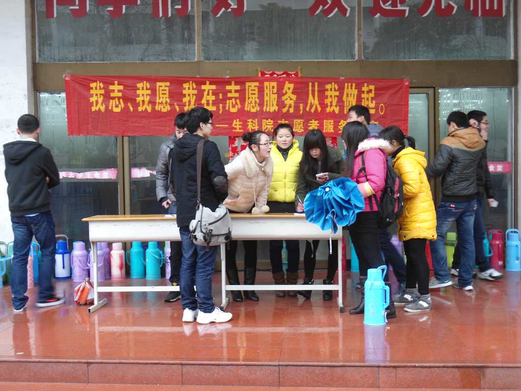 随着新学期的开始,生科院志愿者服务队于3月1日在食堂门前开展了志愿者招募工作。虽然天空中春雨淅淅沥沥,但广大同学们参与志愿服务热情高昂,短短的两个小时共招募志愿者百余人,老员工志愿者奉献他人服务社会的志愿精神在公司青年学子身上得到了充分的体现。3月起,志愿者们将深入校园、社区、公园等公共场所开展各种环保宣教、爱心家教、绿色银行等特色活动,将学雷锋精神落实到实处。