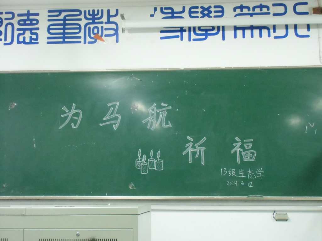 烛火护航,点燃希望。生物科学、园艺等专业的同学用蜡烛表祝福,将希望传递到时空的每一处,希望漆黑夜里的点点烛光为马航照亮回家的路,愿他们平安归来。