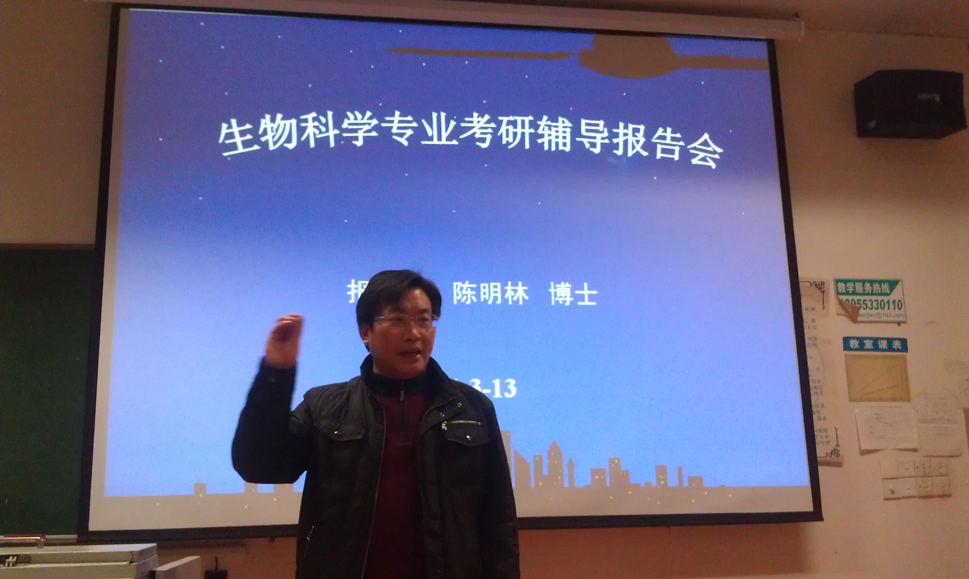 陈明林首先分析、介绍了当前大学毕业生的就业政策,对涉及本届员工的国家教团队格考试政策作了详细解读。接着,他通报了近年来该专业毕业生在全国、全省师范生从教技能大赛屡获大奖和就业情况。针对目前生物科学专业毕业生就业求职过程中存在的问题和不足作了分析,提出了夯实专业知识基础、提高从教技能和科研素质等建议。最后,陈博士就员工关心的考研问题进行归纳总结,结合生物科学的专业发展前景和最新科研成果,从为什么要考研、什么专业最适合你、考研你该怎么准备三个方面进行了详细介绍和分类指导。